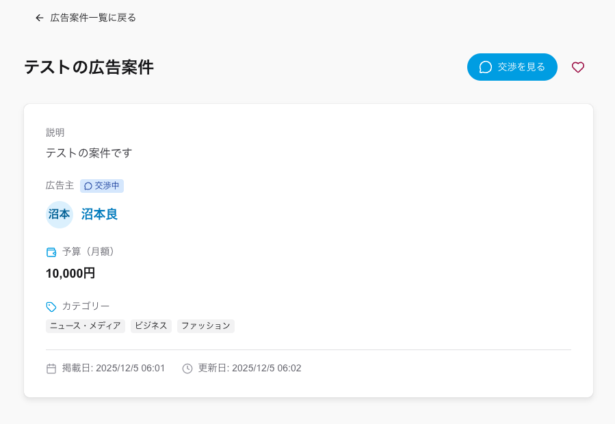 興味のある広告案件が見つかったら、広告主に交渉を申し込むことができます。